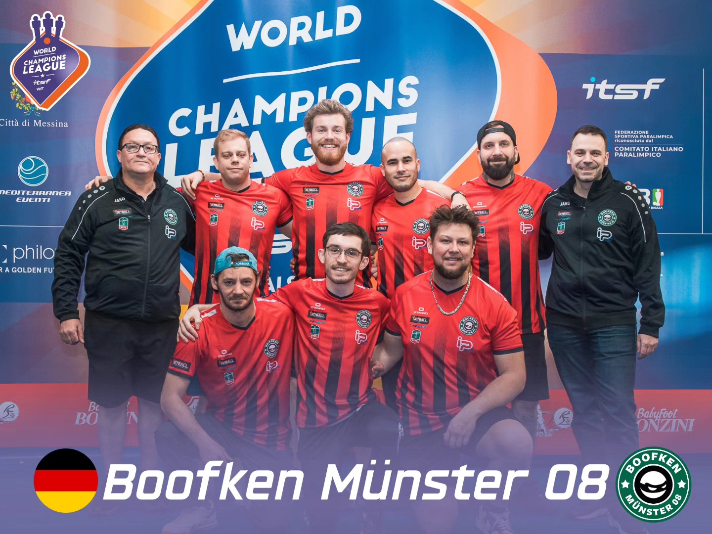 Besonders erfolgreich verlief das Turnier für das Herrenteam von Boofken Münster 08. In einem stark besetzten Feld von 29 Herrenteams erreichte die Mannschaft einen hervorragenden 3. Platz. Damit war Boofken Münster 08 nicht nur auf dem Podium vertreten, sondern zugleich das bestplatzierte deutsche Team im Herrenwettbewerb – ein bedeutender Erfolg für den Tischfußballsport in NRW.